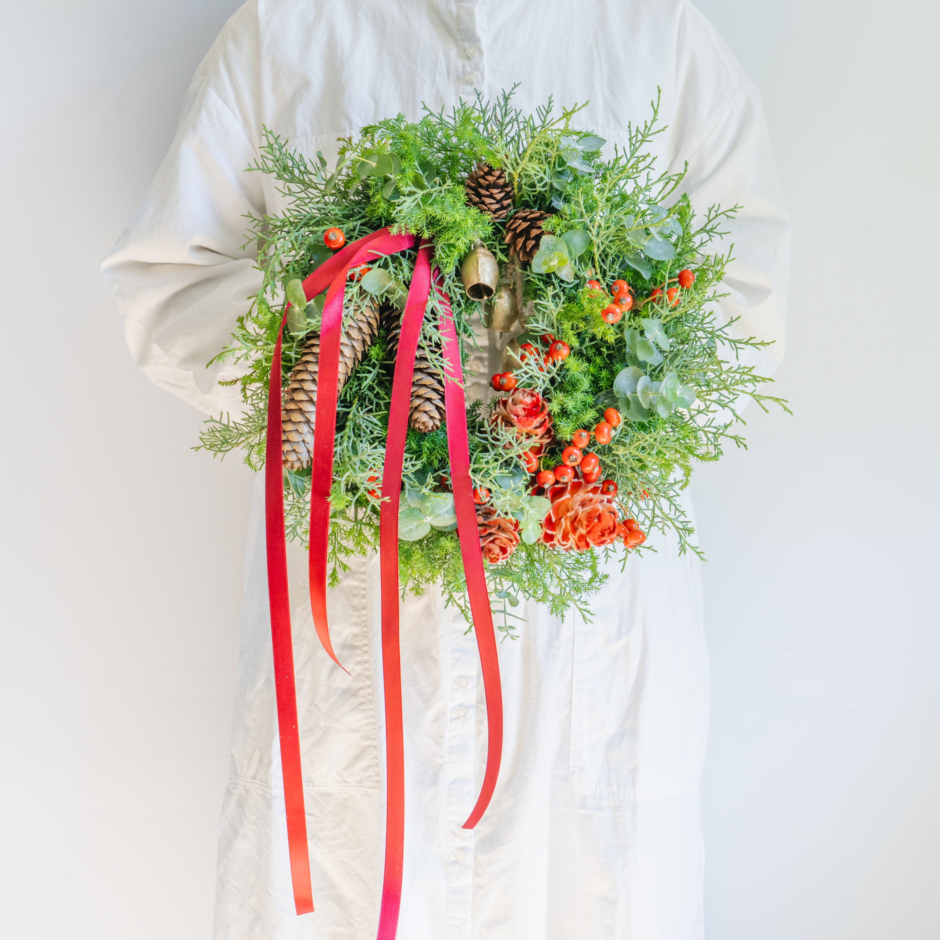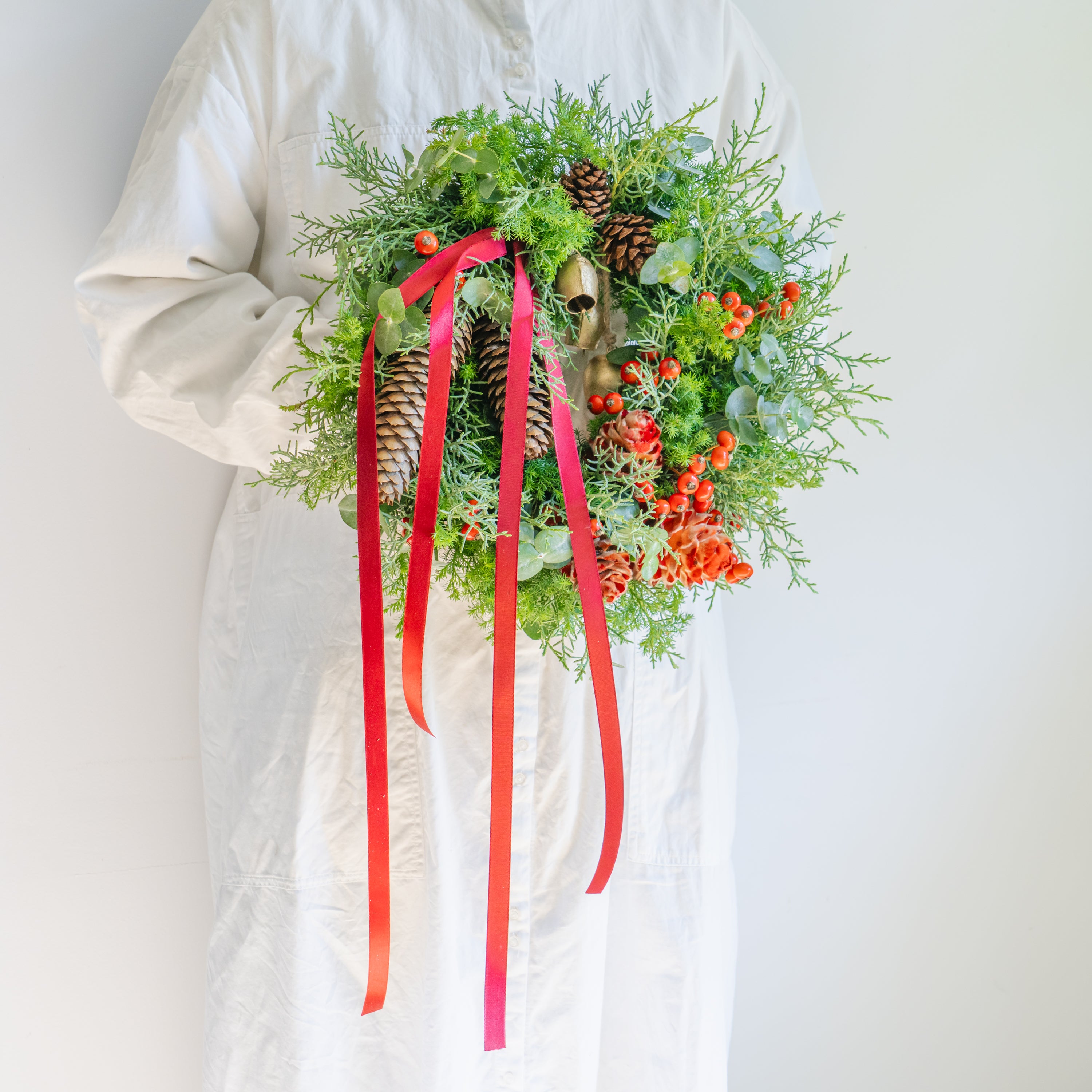 フレッシュな針葉樹を使用したリースに、tetteオリジナルの装飾をしたオリジナルリースです。