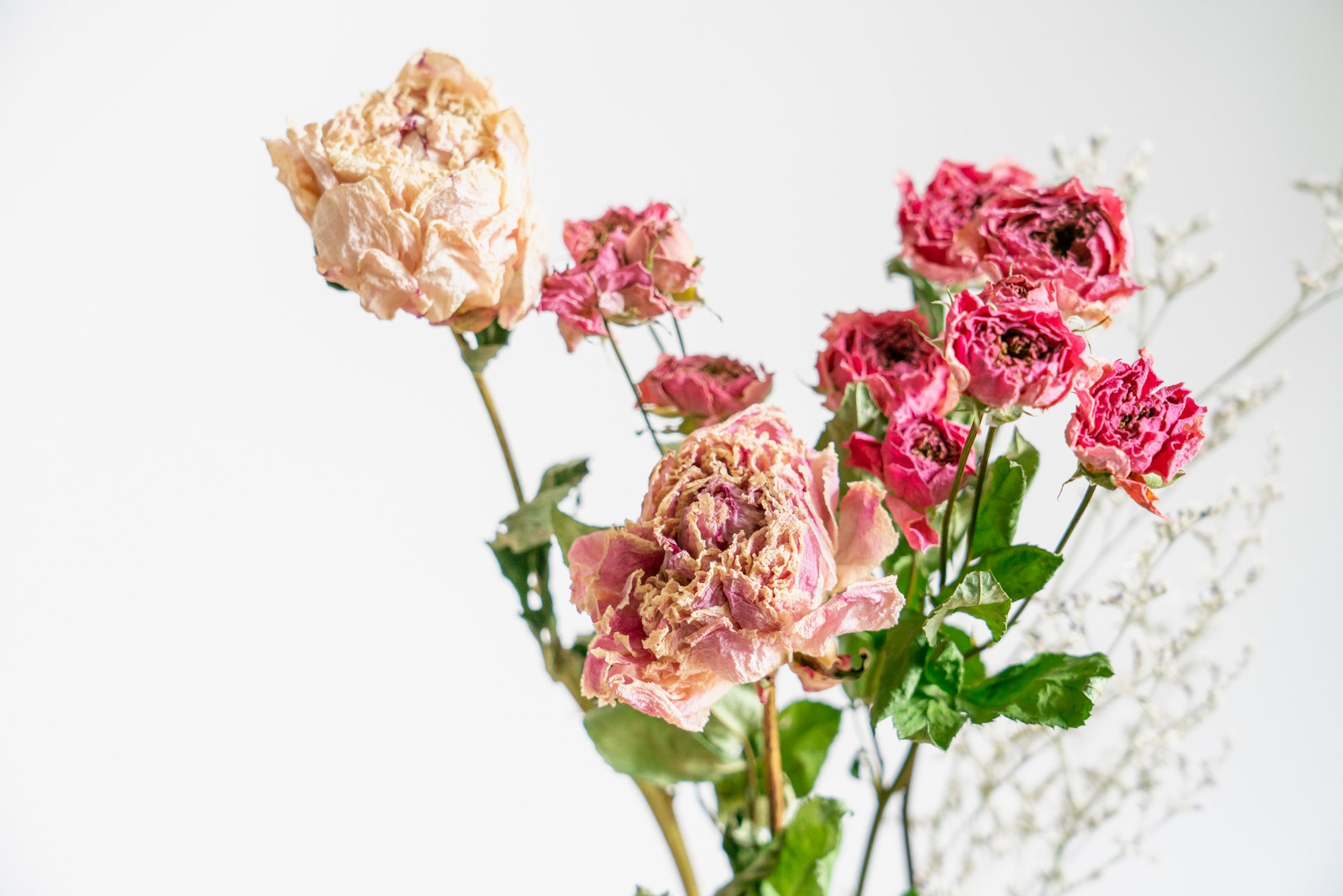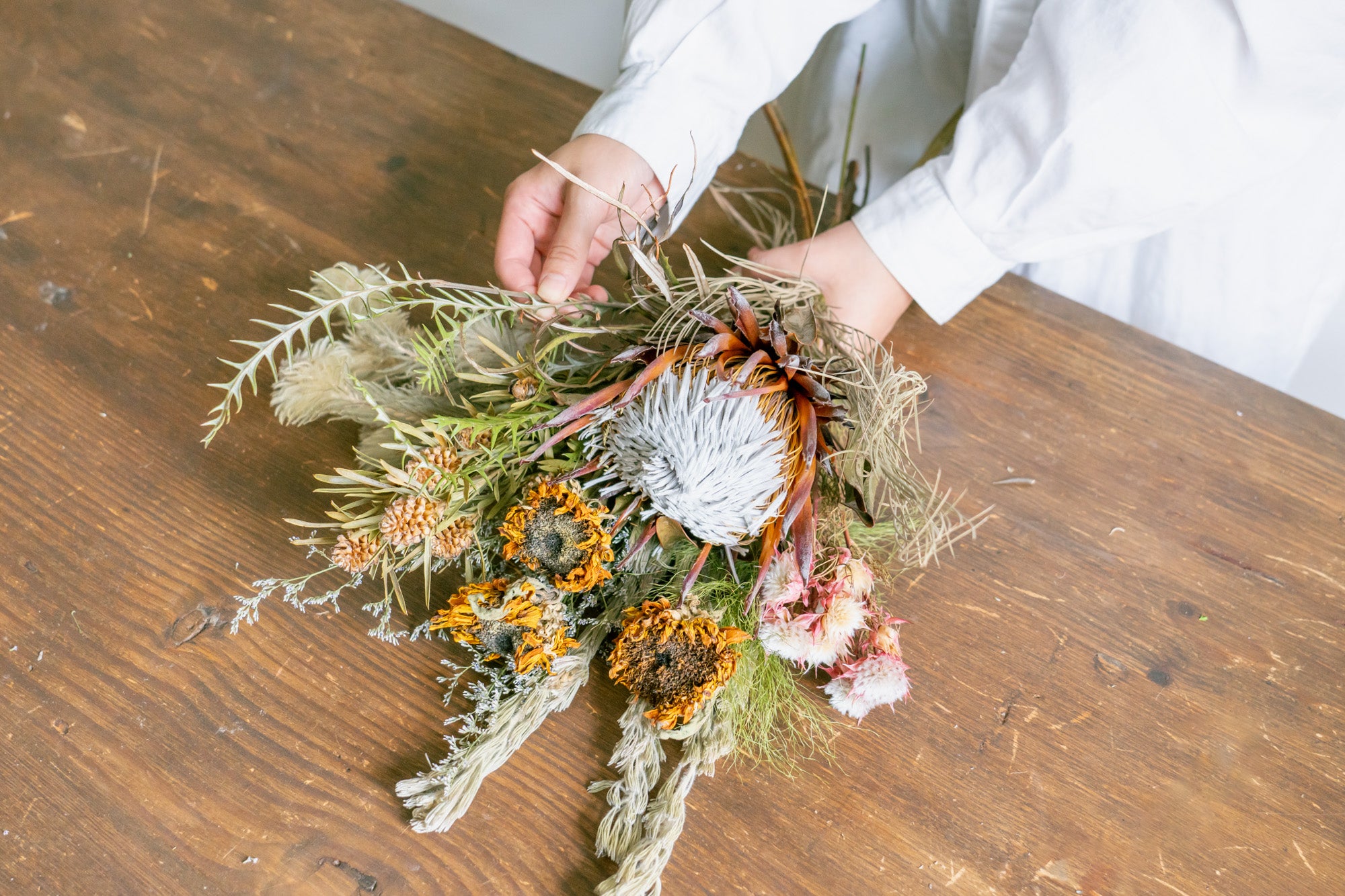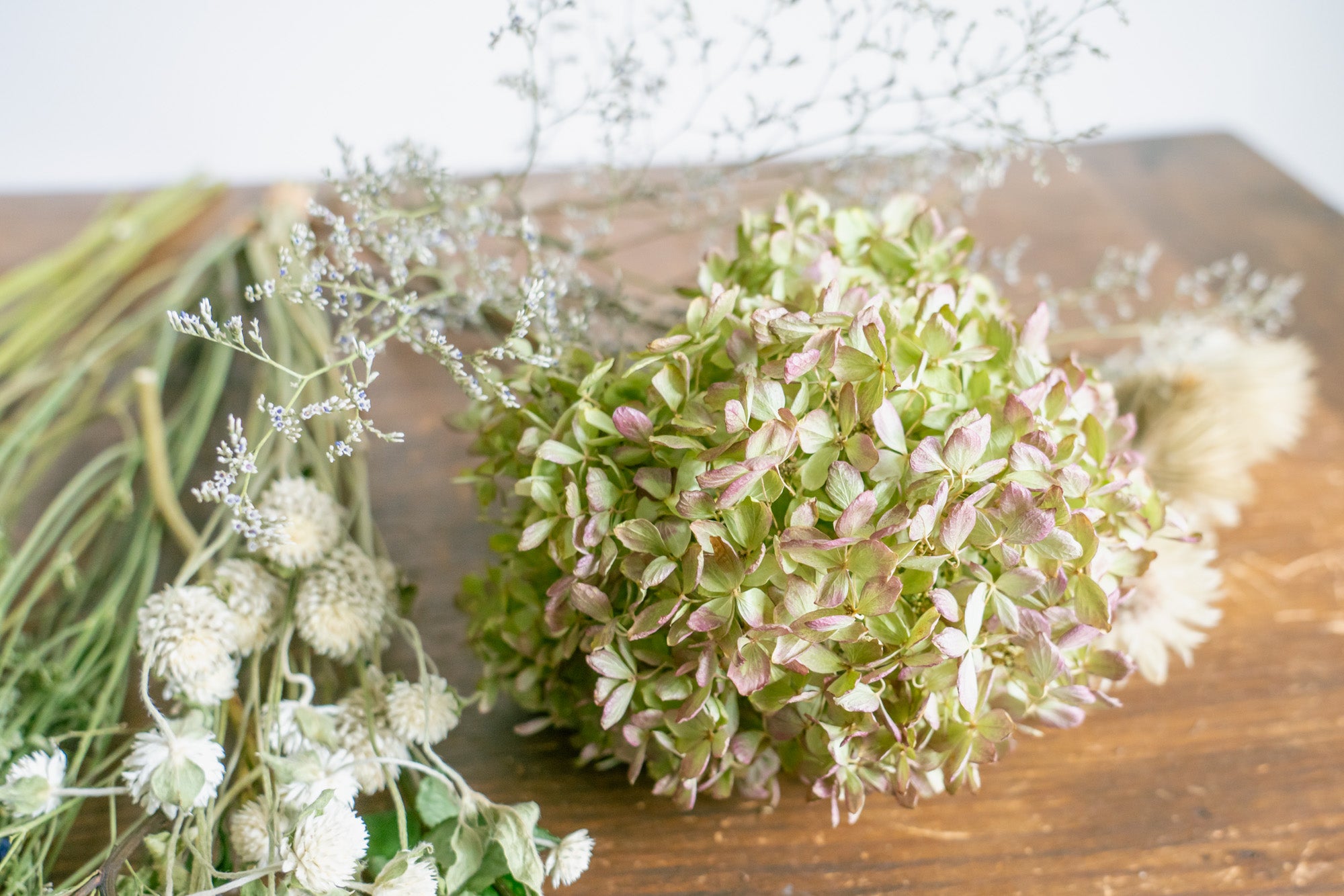 ほんの一例ですが、春は芍薬、夏は向日葵、秋はアンティークアジサイ、冬はネイティブフラワーなど季節の旬なお花もドライフラワーで楽しめたりします。