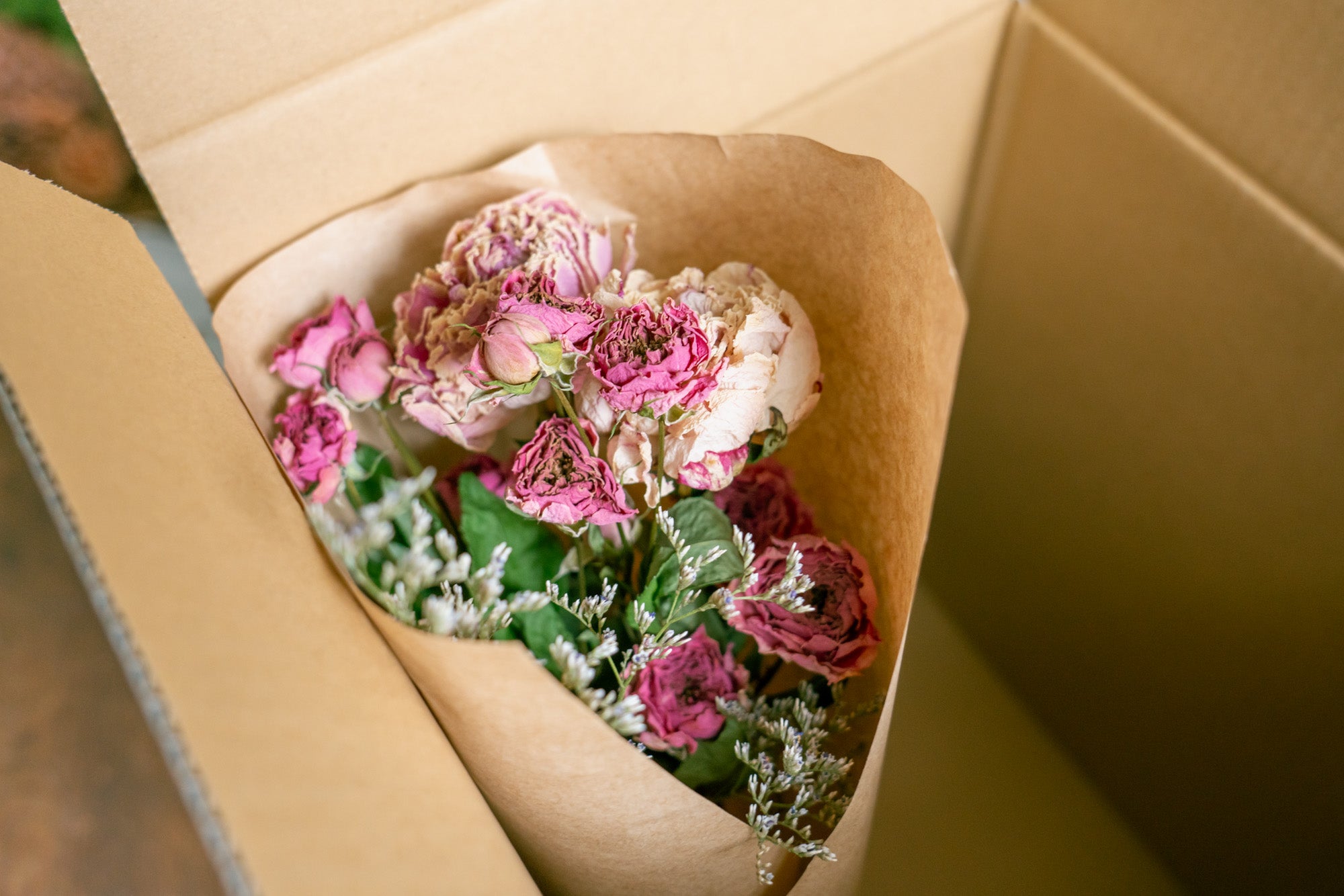 ドライフラワーは繊細なため届いた時点で潰れてしまっていた場合、交換対応させていただきます。
